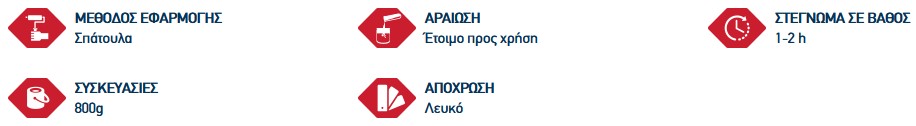 • Ελαστικός ακρυλικός στόκος κατάλληλος για μόνωση και στεγανοποίηση ρωγμών και αρμών σε εσωτερικούς και εξωτερικούς τοίχους και ταράτσες.