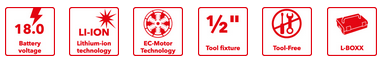 • Σύστημα μπαταριών FLEX: λειτουργεί με όλες τις μπαταρίες 18,0 V FLEX.